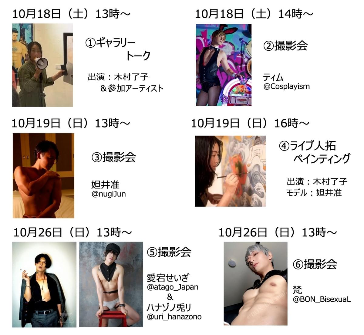 今回もイケメン画家の木村了子さんがキュレーションを行い写真、絵画、彫刻等様々な手法によりおとこのからだを表現します。来場者の方々が気軽に参加できる男性モデル撮影会等のイベントも企画しています。
